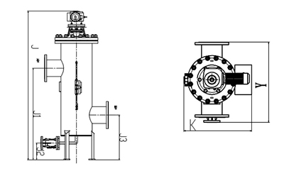 | 型號(hào) | 管徑 | 出入水口 | J | J1 | J2 | Y | K | 過(guò)濾面積 | 處理水量 | 重量 |